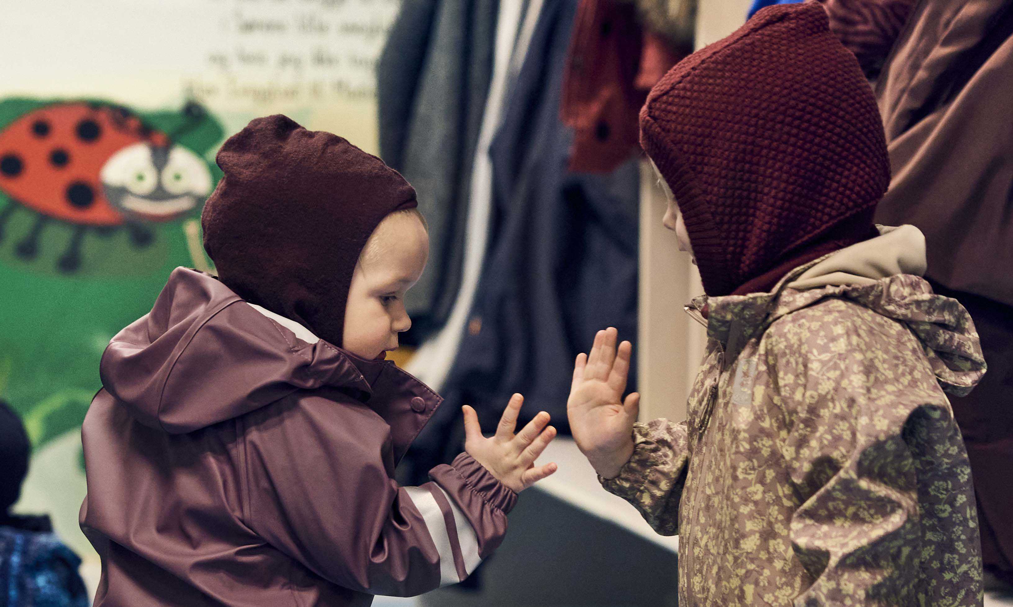 Børnehavebørn giver hinanden high five