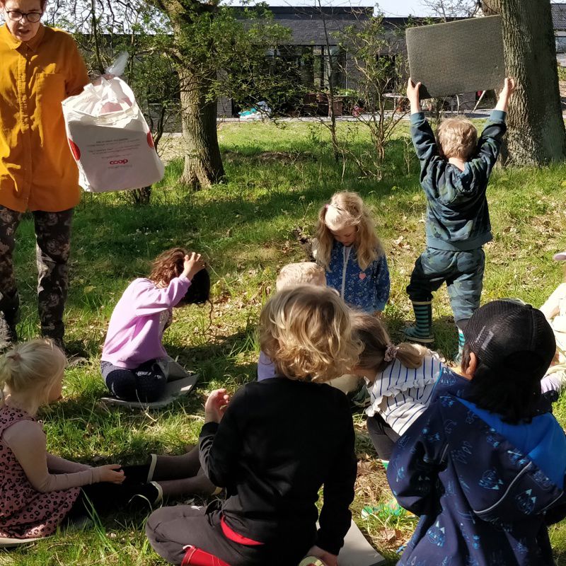 Kl. 14.00 spiser vi eftermiddagsmad. Herefter bliver vi på legepladsen, indtil børnene bliver hentet.